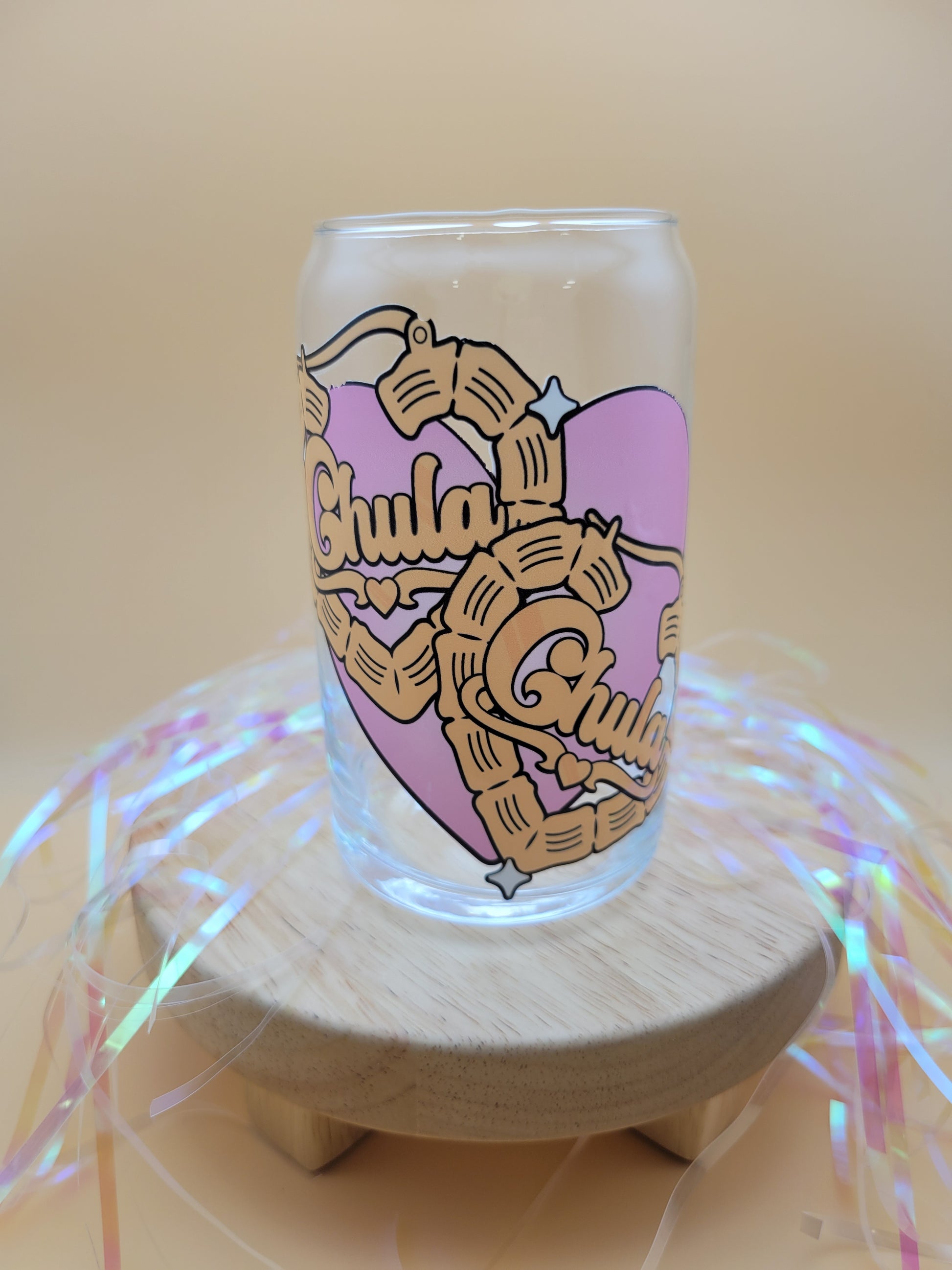16 oz. Glass Can | Glass Straw and Bamboo Lid included | Made with UVDTF Wrap | Hand Wash Only